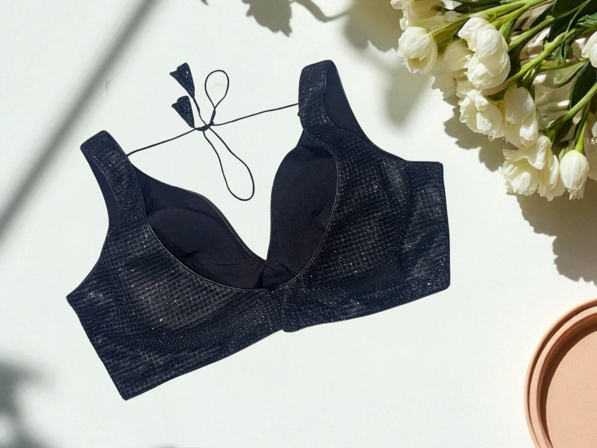 Black shimmer sleeveless blouse