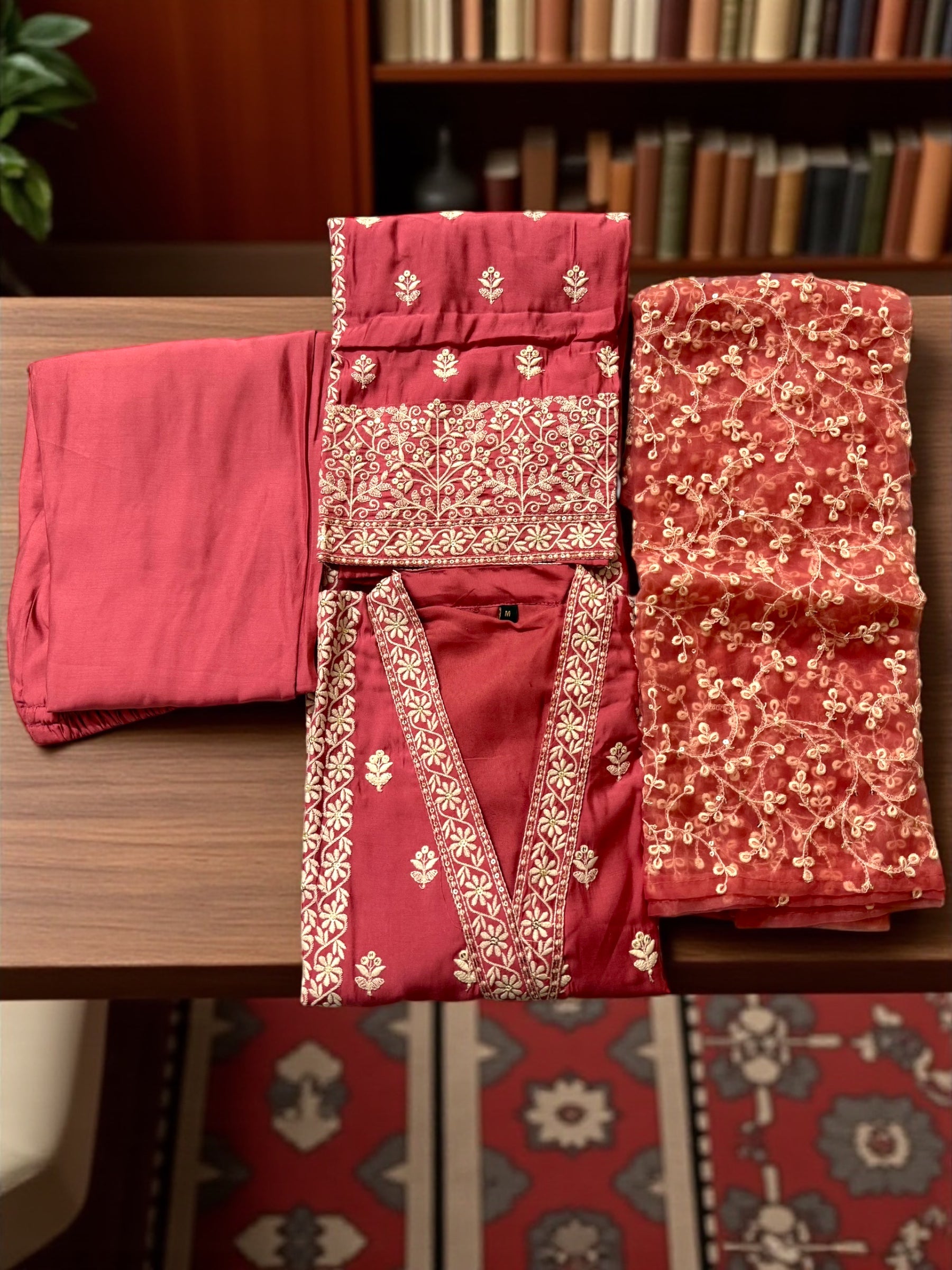 Elevate your ethnic wardrobe with the Onion Pink Semi Crepe Stitched Salwar Suit. Crafted from premium semi-crepe fabric, this suit combines durability with a fluid drape for comfortable wear. Its tailored stitching ensures a flattering fit, while the subtle onion pink hue adds a refined touch suitable for both casual and formal occasions. Designed for ease and elegance, this salwar suit offers breathable comfort and timeless style for discerning wearers.