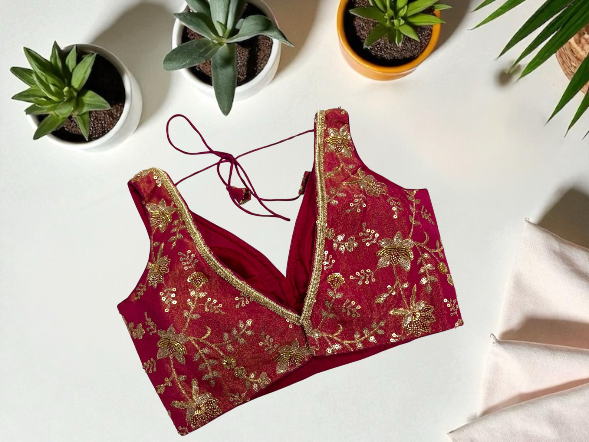 Elevate your traditional collection with this pastel pink blouse featuring intricate zari embroidery. Crafted to enhance elegance, its delicate metallic threadwork adds a subtle shimmer, perfect for festive occasions or weddings. The pastel pink shade offers a soft, sophisticated look that pairs beautifully with sarees or lehengas, making it a versatile staple for refined ethnic wear.