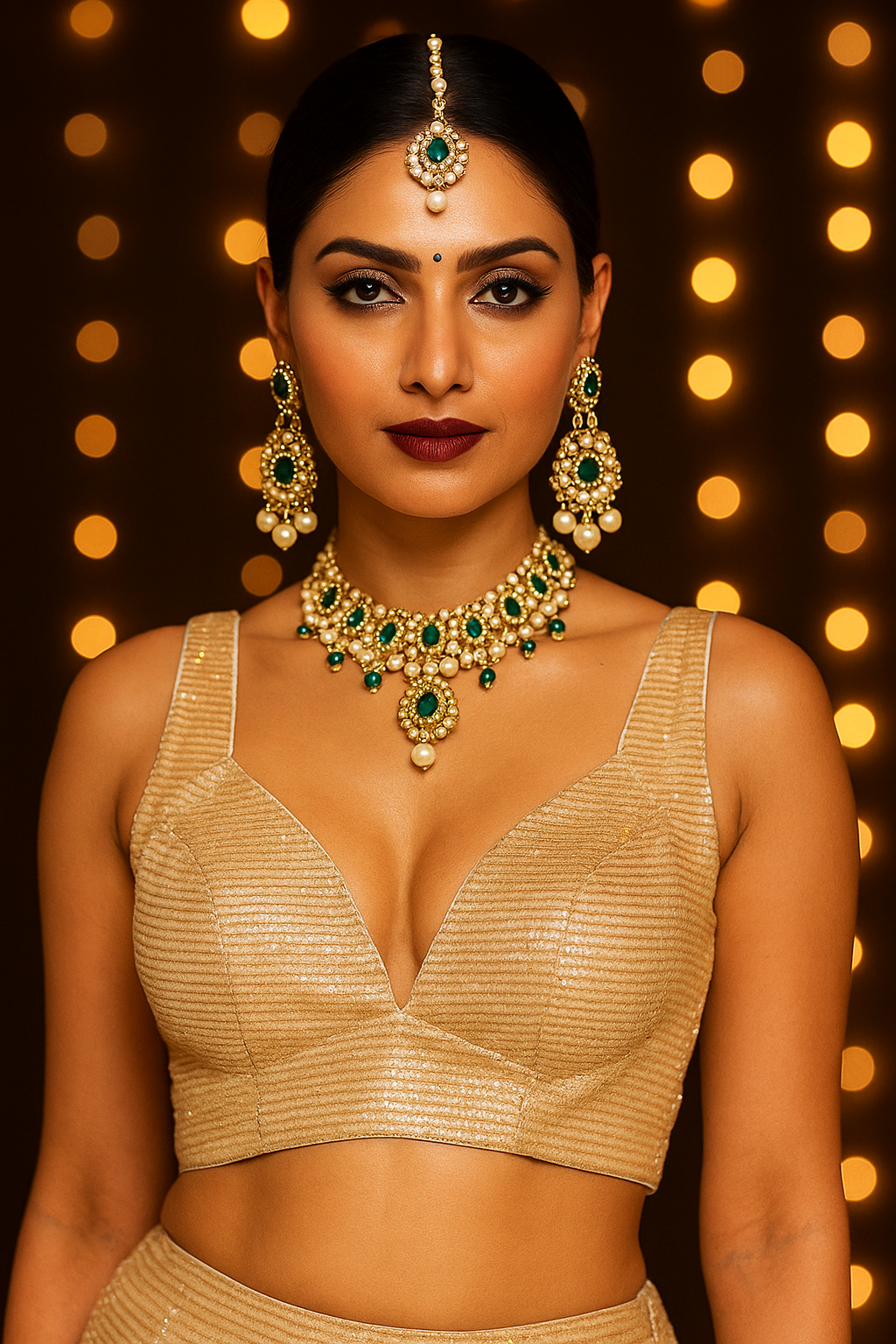 This peach shimmer sleeveless blouse combines subtle elegance with a touch of sparkle, making it ideal for festive and formal occasions. Its sleeveless design ensures ease of movement and comfort, while the shimmer fabric adds a refined glow to your look. Perfectly tailored to complement traditional outfits like sarees or lehengas, this blouse enhances your ensemble with understated sophistication.