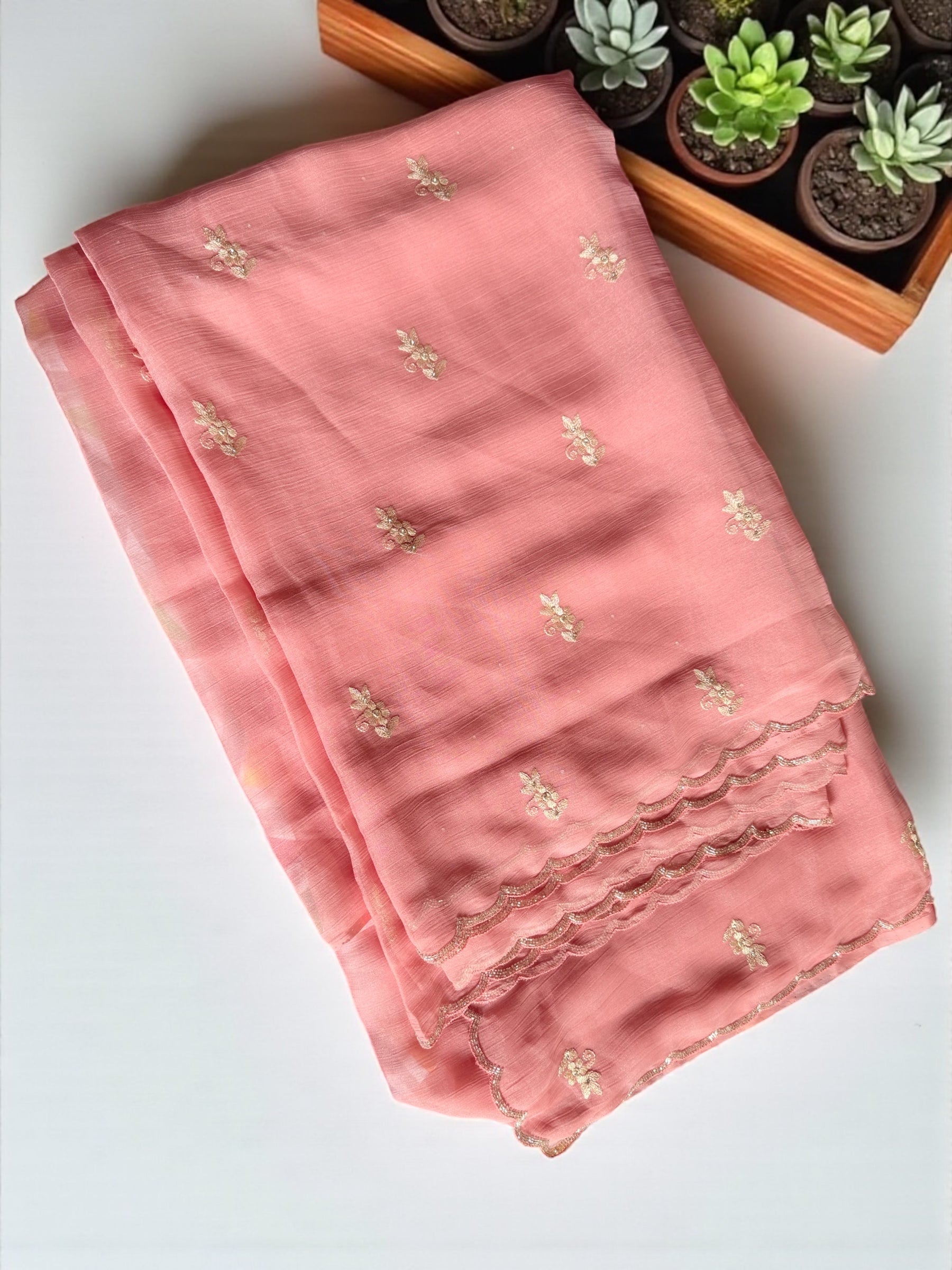 Elevate your ethnic wardrobe with this Pink Chinnon Silk Saree, crafted to balance elegance and comfort. The smooth, lightweight chinnon silk drapes gracefully, offering a refined silhouette suitable for both formal occasions and festive celebrations. Its delicate texture ensures breathability while maintaining a lustrous finish, making it an enduring choice for traditional wear. This saree pairs effortlessly with a variety of blouse styles, allowing versatile styling options for a sophisticated look.