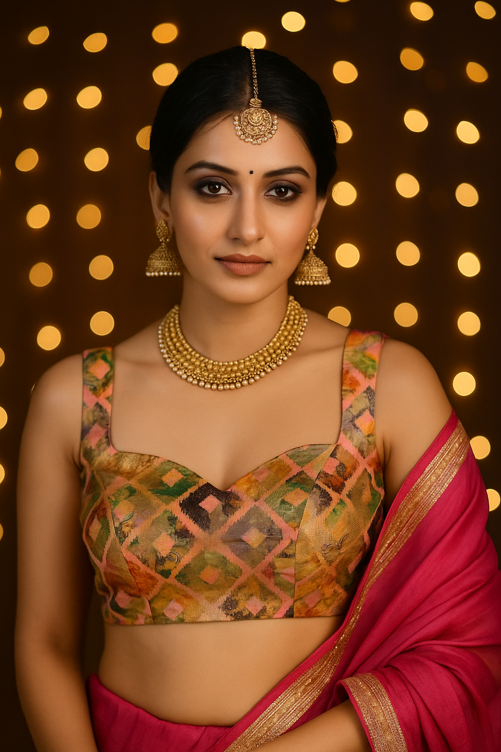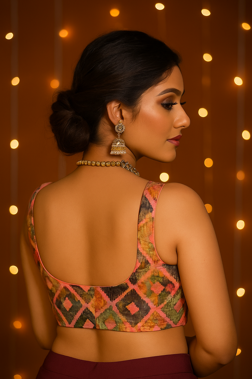 Pink multicolor diamond-print blouse
